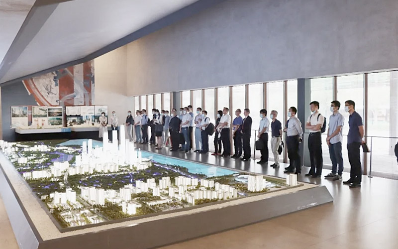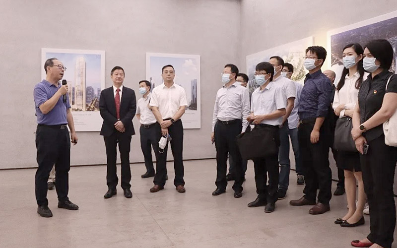 在深圳湾超级总部基地城市展厅,陈湘生院士细致听取了超总城市设计、建筑方案、交通规划等情况介绍,重点了解了片区地下空间和市政规划的核心理念、总体布局、先进技术、未来科技运用情况。